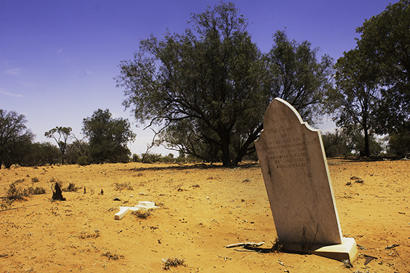 Gray, James, Kalgoorlie, WA. The 23-year-old’s fallen-down headstone is slowly being buried by the red dust of the Coolgardie cemetery. He died of pneumonia.