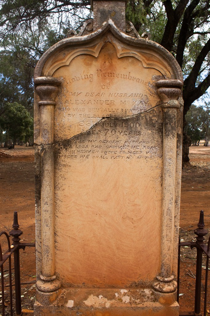 McKay’s gravestone stands proudly in the Gulgong Cemetery, New South Wales, slightly apart from other graves.