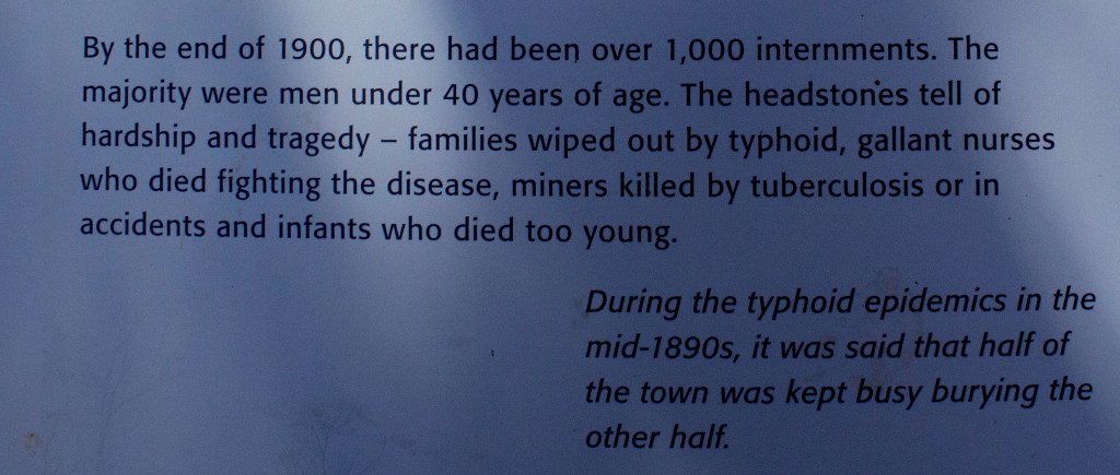 The mining town of Coolgardie felt the impact, which is still evident in its cemetery today, both on the welcoming sign and the epithaths within.