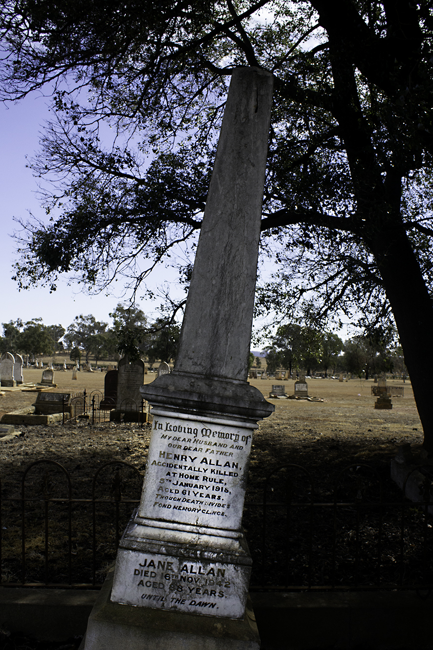 While it is unknown where Hood is buried, at least three other Gulgong Cemetery headstones are related to horse-caused deaths.