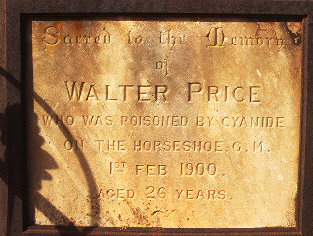 Price is buried in the fascinating Kalgoorlie cemetery, amongst scores of other graves citing deaths at mines.
