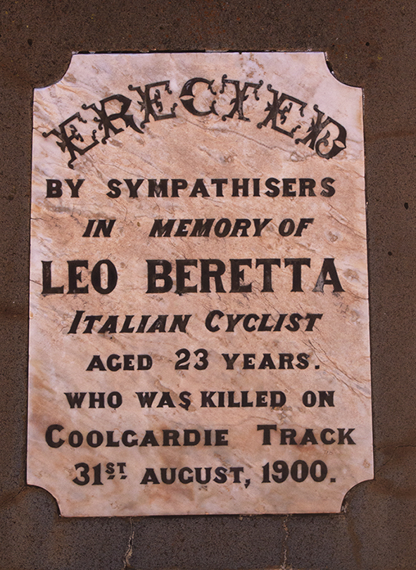 Although Italian cyclist Leo Beretta lived far from home in the dusty mining town of Coolgardie, he was so esteemed among locals that an eight-foot granite memorial was raised in his memory.