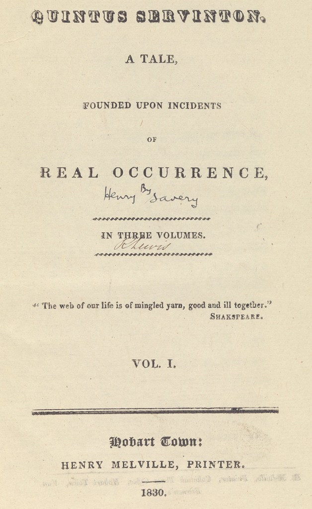 While in prison, Savery wrote satirical sketches under a pseudonym, which was gathered into a volume and published as Australia’s first book of essays in 1829. He also started his semi-autobiographical novel Quintus Servinton. It is considered important because of its unique position as a first-hand account of convict life.