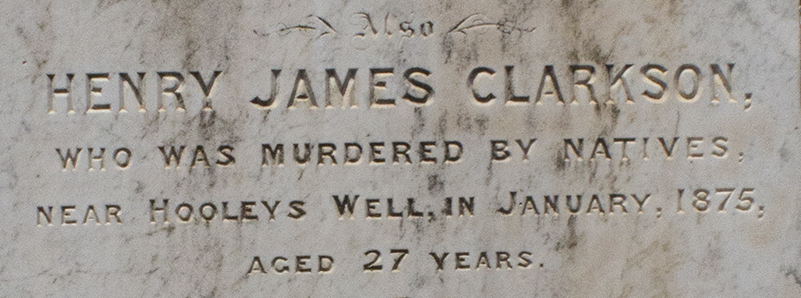 Henry James Clarkson, who was murdered by native at Hooleys Well in January 1875 aged 27 years. Greenough Pioneer Cemetery. Images Sharyn Moodie