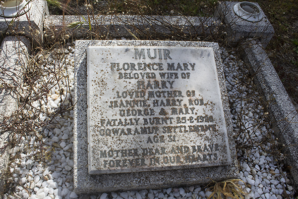 Florence Muir received life-taking burns as she was cooking dinner and now rests among the she-oaks at the cemetery. Her story is here.