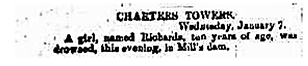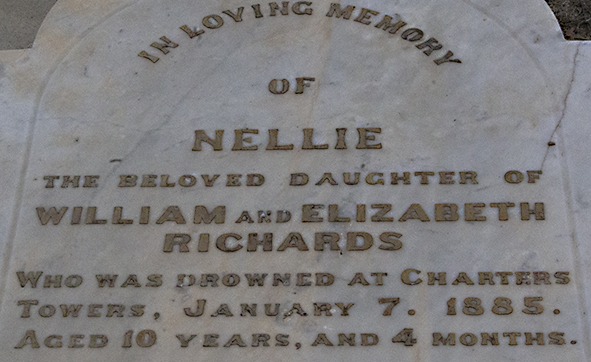 Charters Towers, 1885 – The drowning death of Nell Richards led for calls for the town’s dams to be fenced before any more children were lost.