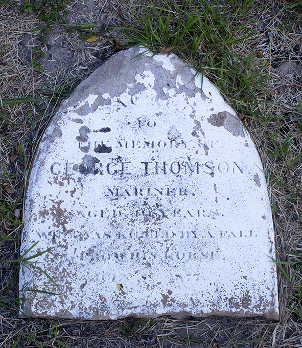 Another man in the Gladstone cemetery who was killed by a fall from his steed, and perhaps could be forgiven for not being horse-savvy, was mariner George Thomson, who died back in 1877. His broken gravestone lies on the ground..