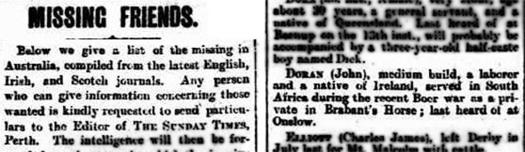 There is no reportage to say that anyone came forward to claim the body. A missing person’s notice for a man of that name appears in a Western Australian newspaper in 1904.