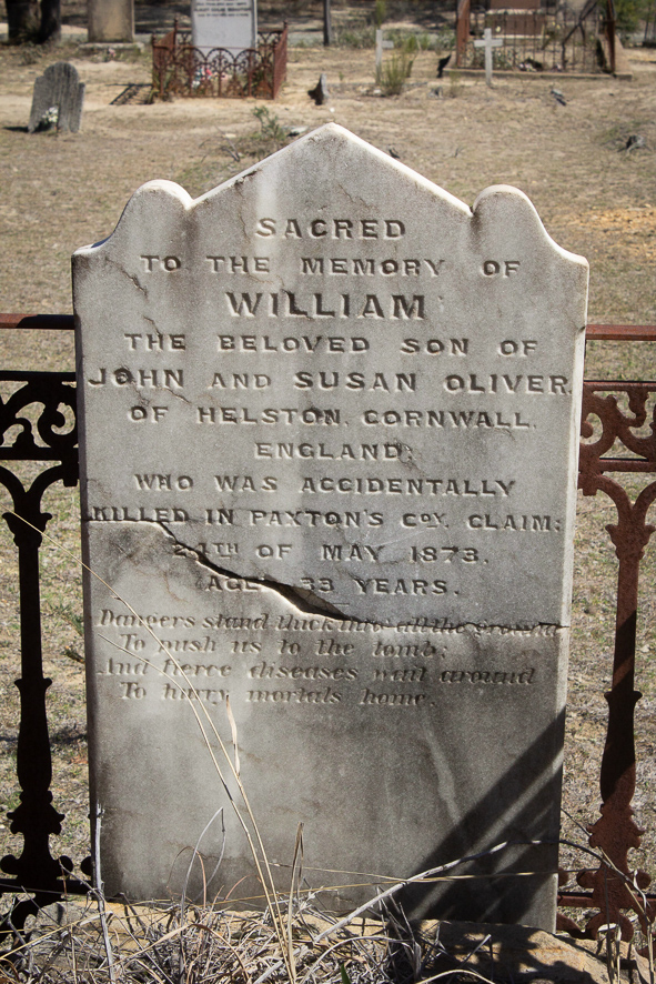 Oliver’s headstone stands still at the small cemetery which still stands just a few kilometres from the National Parks-run Hill End township.