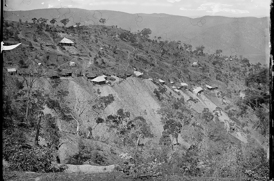 Mitchell Library, State Library of New South Wales Goldmines in the southern section of Hawkins Hill, (showing Star of Hope two-storey mine), Hill End, viewed at https://collection.sl.nsw.gov.au/digital/ePqZ6o3LyXexp